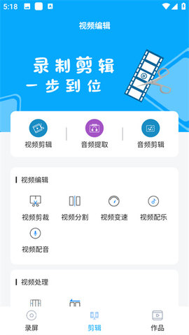 4、录制完成后,用户可以点击下方的剪辑选项,进入视频编辑界面,进行视频处理、添加滤镜或配音等操作。
