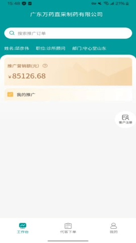 万药管家是一款为业务人员设计的高效办公软件,提升日常工作效率。当你在忙碌的工作中,能够随时随地获取客户资源,进行业务拓展,就能满足你的需求。不仅支持实时药物推广,还可以帮助你记录每一次的推广活动,确保你对销售数据有清晰的了解,便于优化策略,从而提升业绩收入。
