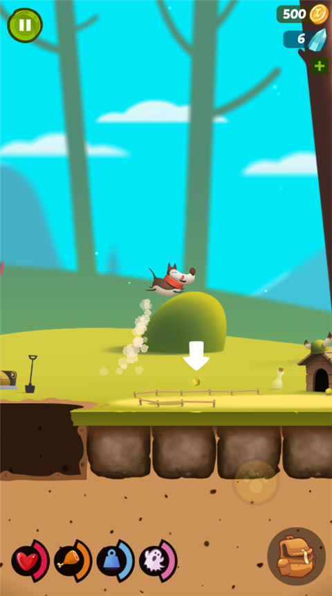 1、熟悉游戏的操作是成功的关键,左下角的箭头控制小狗的移动方向,右下角的按钮则用于跳跃和翻滚。