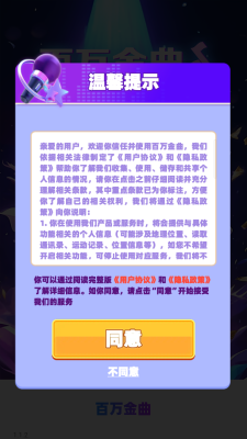 1、首先下载并安装百万金曲App,注册后进入主界面,你会看到丰富的歌曲曲库,点击开始游戏即可进入挑战。