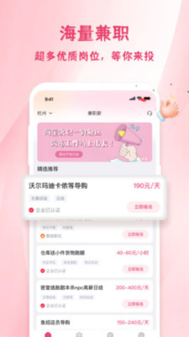 3、软件界面设计简洁明了,功能易于掌握,用户可以快速找到自己感兴趣的兼职岗位。