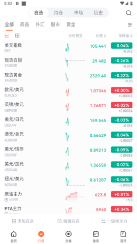 1、允许用户自定义关注的市场品种,帮助他们更方便地跟踪自己感兴趣的投资标的。