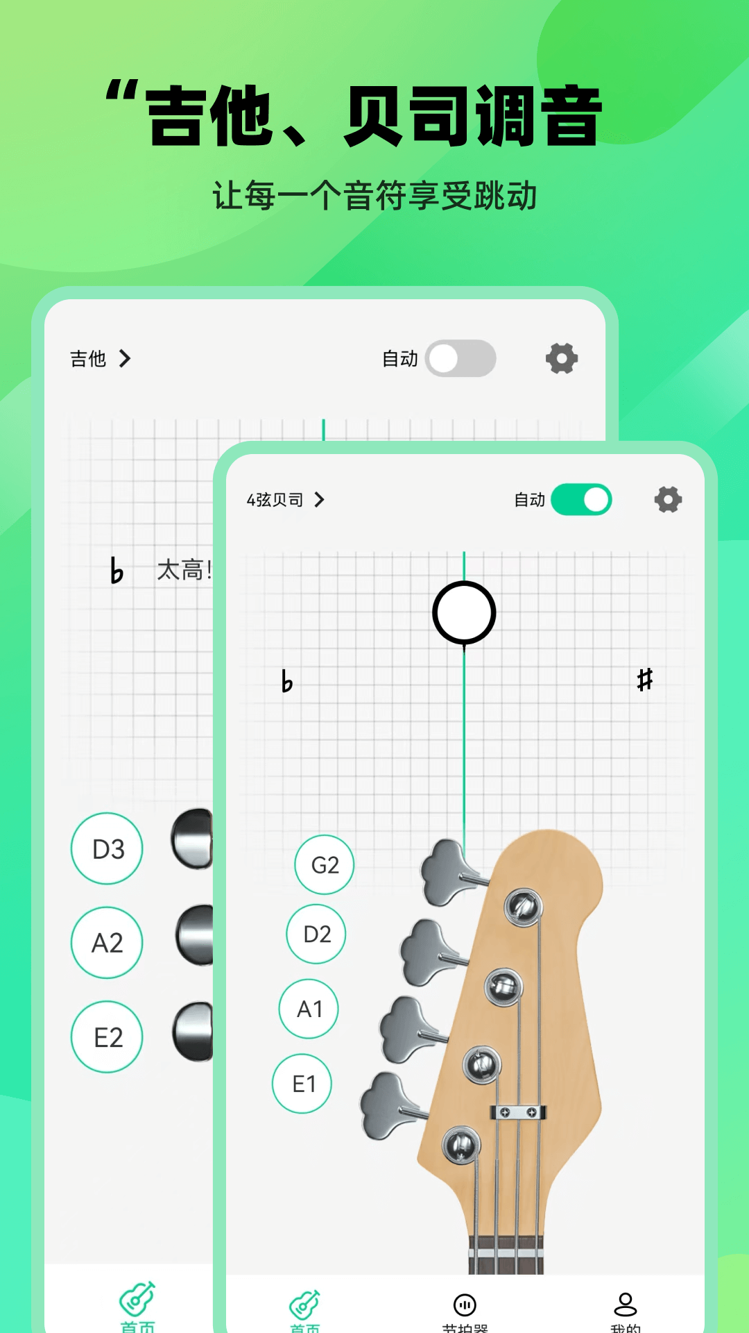 贝斯或吉他的低音弦频率较低,建议关闭手机壳增强收音效果,调音时避开其他声源干扰。