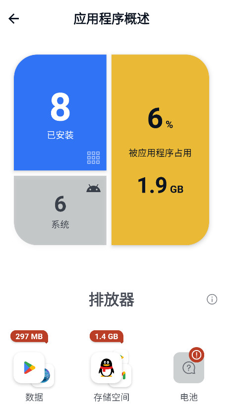 1、应用管理模块显示所有程序的缓存大小,支持批量清理社交媒体的临时文件。