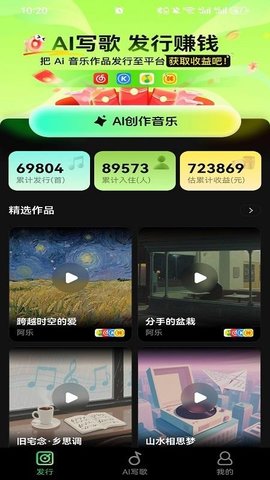 1、打开Ai金曲大师应用,进入主界面后,你会看到一个简洁的操作面板,方便你进行各种创作。