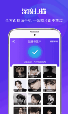 1、图片恢复功能可以帮助用户找回误删的照片,包括相册中的图片、缓存照片及社交软件中的图片。