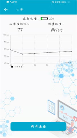 2、选择目标设备进行配对,确认连接后,应用会显示实时数据流,例如心率和体温读数。