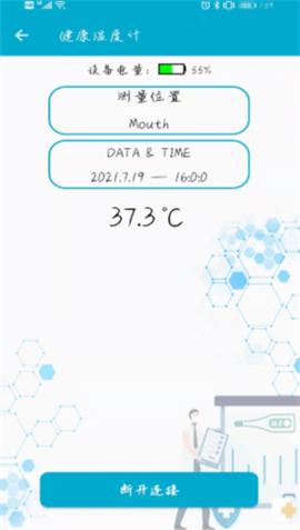 2、与体温计配对监测体温变化,方便日常健康检查或疾病恢复期跟踪。