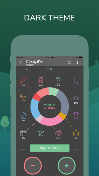 1、主界面以清晰的圆环图展示当前周期内的支出分配比例,不同消费类别以不同颜色区块区分,视觉上对开销结构一目了然。