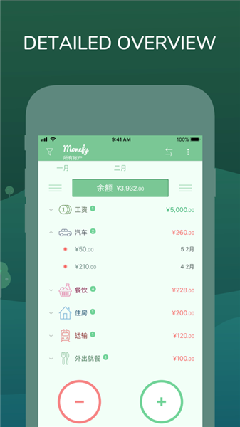 monefy是一款用于记录日常收支的记账工具,主要功能在于帮助使用者清晰掌握每日的资金流向与具体用途,不管是餐饮、交通还是购物等常见开销,都可以快速添加条目进行记录。通过一段时间的持续能够形成比较直观的月度消费概览,从而更容易识别出非必要的支出项目,为调整个人财务习惯提供参考依据。工具在操作逻辑上比较直接,对于希望梳理个人或家庭开销明细的用户来说,是一个较为实用的选择。