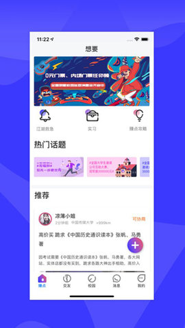 想要是一款由成都超级梦网络技术股份有限公司开发的校园社交应用,让大学生在校园生活中找到更多共鸣和交流机会。你可以轻松分享日常趣事,或者倾诉内心的烦恼,结识那些和你有着相似兴趣的同龄人。