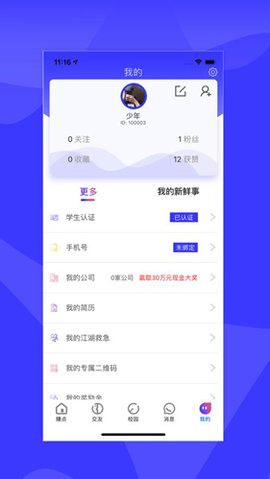 1、打开应用后,先完善个人资料,添加你的学校信息和兴趣爱好,系统能更好地推荐匹配好友。