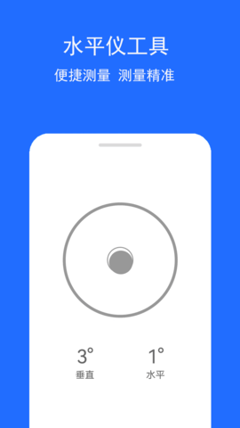 3、水平仪工具利用手机陀螺仪数据,实时显示当前设备与水平面的倾斜角度变化。