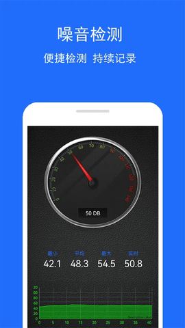 2、噪音检测界面会动态显示分贝变化曲线,标注当前环境噪音的安全等级。