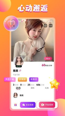 3、遇到感兴趣的匹配对象,可以选择文字问候或直接发起视频邀请。