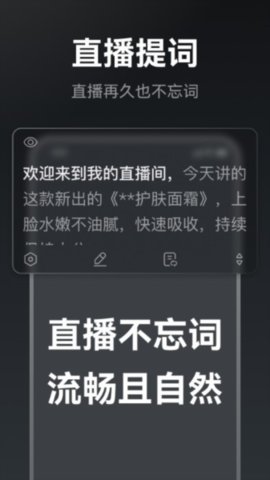 1、实时提词功能在直播或演讲中自动显示台词,让你无需死记硬背,就能保持语句连贯自然。