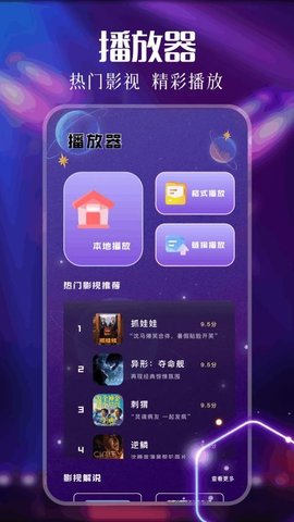 2、支持本地播放、链接播放和多种格式播放,覆盖不同来源的视频内容需求。