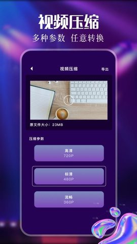4、编辑完成后,进入压缩选项设置画质级别,一键保存减少文件大小。
