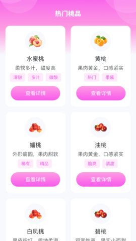 1、在主页面浏览推荐的桃子品种,点击感兴趣的内容查看详细介绍。