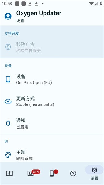 2、Oxygen Updater内置四种主题模式切换,包括根据日出日落自动调节的智能主题。