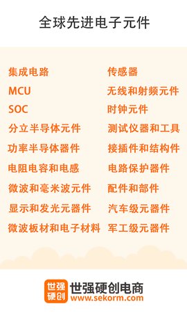 世强硬创电商是一款硬创服务平台,连中国数十万硬创企业与全球领先的技术资源,让企业能够快速获取创新元件和解决方案,在研发过程中节省时间和成本,提升产品整体品质。许多知名企业如中车、比亚迪、迈瑞、大疆、海尔、海康威视等都在日常工作中使用它,从元件选型到实验室采购,各个环节都能找到对应的工具和资源,让创新过程更加顺畅高效。