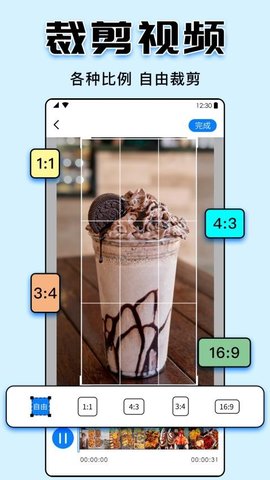 4、画面比例调整功能包含16:9、1:1、9:16等常用规格,适配多平台需求。
