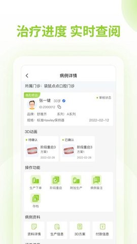 4、牙科管理界面展示定制义齿的工艺流程,从设计到成品每个环节都可追溯。