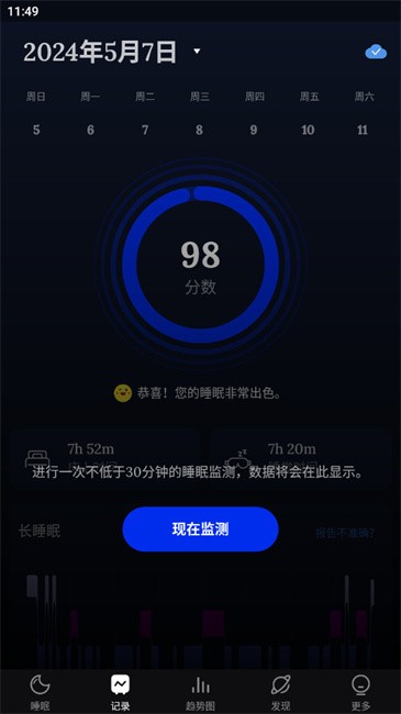 3、30天睡眠数据存储可以回溯较长时间的睡眠模式变化。
