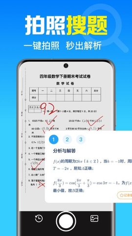 1、拍照搜题功能支持从练习册、试卷甚至手写题目中快速识别题目内容。