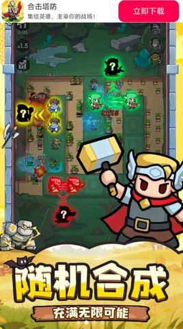 合击塔防是一款颠覆传统的策略手游,将英雄养成与路径防御完美融合,让你在变幻莫测的战场上体验真正的脑力对决。游戏里不仅有甘道夫与直升机的奇幻组合并肩作战,更集结了恶魔猎手、雷电小子等风格迥异的英雄,每位角色都拥有专属的战斗方式。通过巧妙的塔位布局与英雄技能联动,你能在敌人汹涌的攻势中构筑钢铁防线,每一次胜利都充满策略博弈的快感!