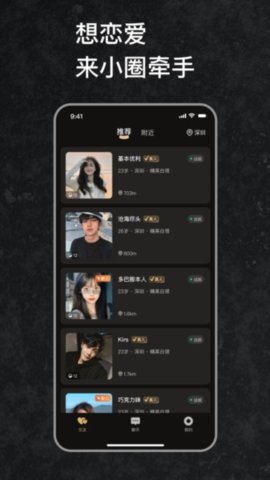 小圈牵手恋爱是一款由广州鑫盛计算机科技有限公司开发的恋爱社交应用,软件运用智能匹配系统与多样互动方式,让单身人士能够自然地认识兴趣相近的朋友。你可以发现许多有趣的社交场景,从日常聊天到共同完成小任务,每个环节都让交友过程变得生动而真实。