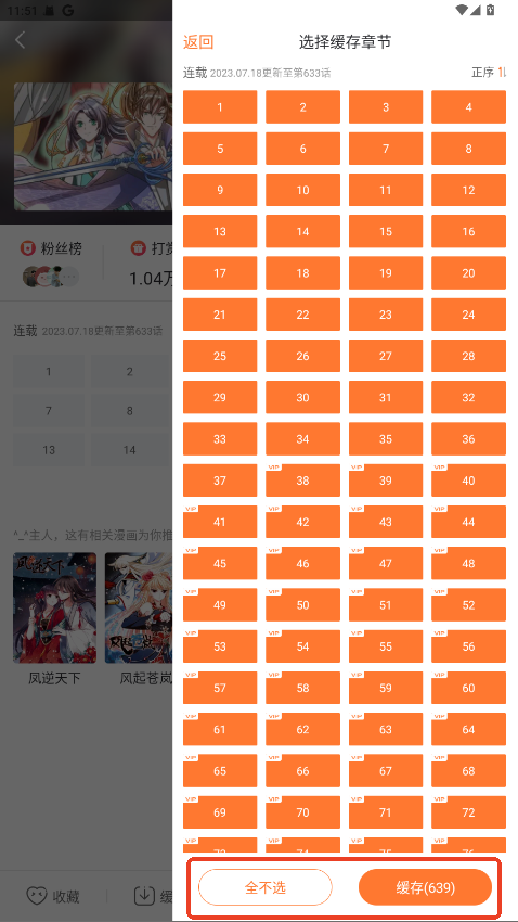 勾选需要下载的章节,点击【缓存】即可开始离线保存。