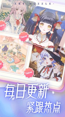 1、贴图玩法将拼图与贴纸创作完美结合,只需轻点屏幕就能将素材贴入指定位置,整个过程流畅自然。