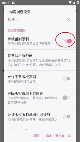 点击【确定】,并重启客户端,之后就能观看对应地区的限定番剧了。
