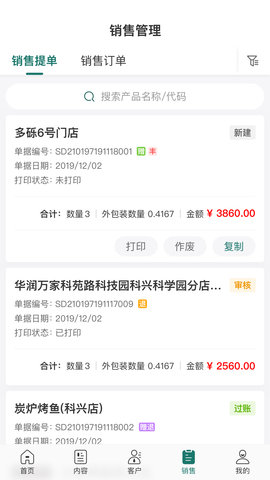 1、业务员在拜访客户途中,随时用手机新建销售订单,系统自动同步到后台仓库,减少纸质单据流转环节。