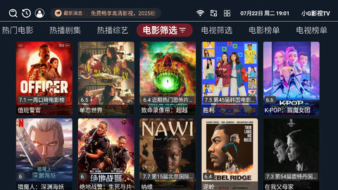 小G影视TV是一款汇聚海量影视资源的播放平台,涵盖院线新片、经典剧集、热门动漫等多元内容,采用智能算法分析观影偏好,每日自动更新片库内容,让观众在客厅沙发上就能畅享沉浸式视听盛宴。