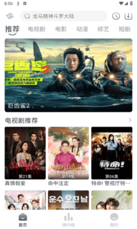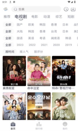 1、搜索框支持关键词模糊匹配,输入部分剧名就能显示相关推荐列表。