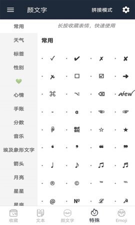3、收藏夹支持云端同步,更换手机后重新登录账号,既往收集的符号组合依然完整呈现。