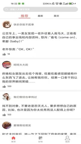 2、在主界面上下滑动浏览推荐内容,向左滑动可查看同类主题的其他段子,向右滑动则跳转到新分类。