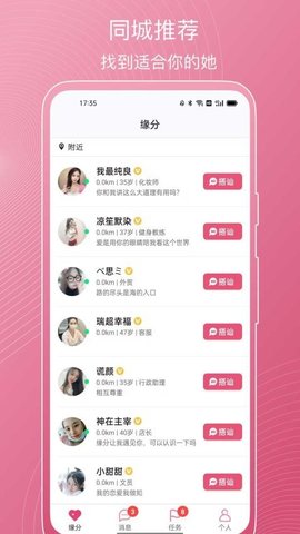 1、系统会根据你填写的个人资料,自动筛选出同城附近的有缘人,减少盲目搜索的时间。