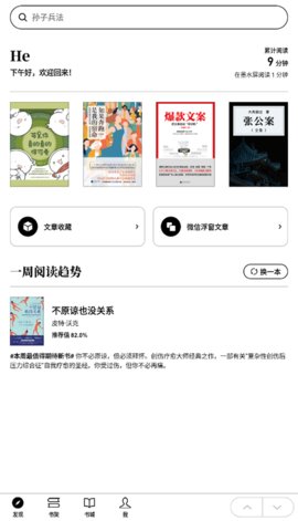 微信读书墨水屏版是一款针对电子墨水屏设备优化的阅读应用,在保持微信读书核心体验的针对墨水屏刷新特性做了深度适配,界面布局简洁清晰,顶部设有搜索入口,中部展示个人书架,底部提供热门书单,整个操作流程在墨水屏设备上滑动流畅,翻页无残影,长时间阅读眼睛不易疲劳。
