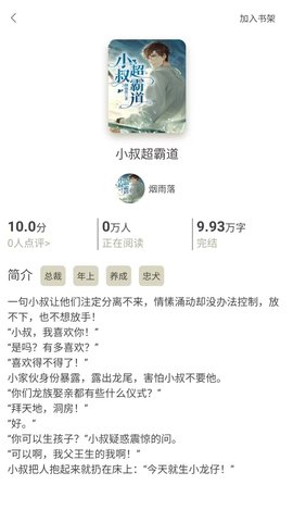 2、进入书籍详情页后,点击封面下方的加书架图标,作品会自动归入个人书库。