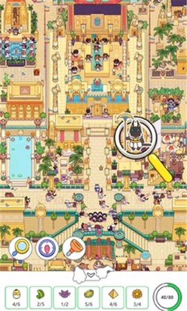 猫咪寻物记是一款让你瞬间被萌化的治愈系寻物手游,当你打开游戏的那一刻,满屏毛茸茸的小家伙就会摇着尾巴朝你奔来。这些会撒娇会卖萌的猫咪们把心爱的小物件藏在了森林咖啡馆的藤蔓花架后,星空露台的望远镜旁边,甚至偷偷塞进了街角涂鸦墙的裂缝里。你需要用敏锐的观察力找出所有隐藏物品,在解锁新场景时还会触发猫咪们精心准备的小剧场,比如购物喵会拉着你讨价还价,街舞喵突然开始即兴battle,每个瞬间都让人忍不住嘴角上扬。
