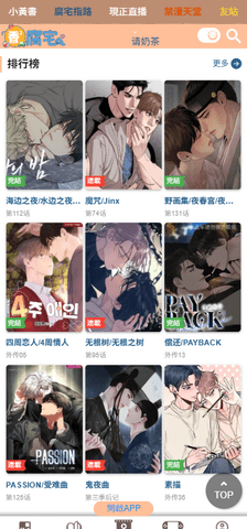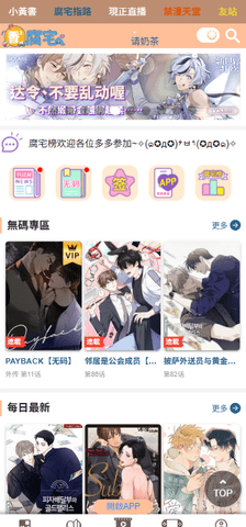 boylove是一款漫画阅读应用,汇集了腐漫、国漫、日漫等多种风格的漫画作品,打开软件就能看到按题材分类的漫画书架,滑动屏幕可以浏览不同国家的热门作品,每部漫画都配有简介和章节列表,点击封面直接进入阅读界面,翻页效果模拟纸质书的质感,夜间模式自动调节屏幕亮度,长按图片还能保存喜欢的画面到本地相册。