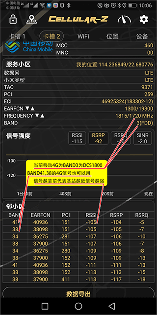 3、cellularz支持导出专业级测试报告,包含RSRP/SINR等26项网络质量参数。