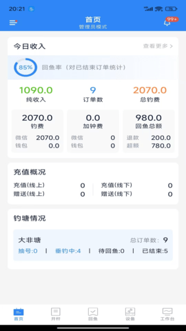 1、软件支持多门店和多钓塘的集中管理,实时监控各场地的使用状态和营收数据,便于统一调整运营策略。