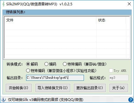 将微信导出的 .silk 语音文件 → 转换为 MP3 / WAV / AMR 等常见音频格式;