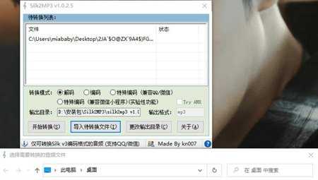 打开silk2mp3软件后,点击【导入】按钮,将刚刚导出的导入软件中。