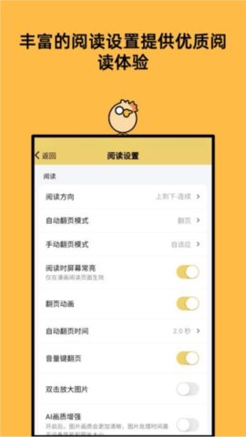 1、夜间模式自动调节屏幕亮度和对比度,长时间阅读不易产生视觉疲劳。