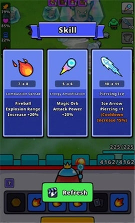 2、技能进化机制让同系法术产生质变,连续选择火系技能可觉醒陨石天降,冰系法术能进阶为绝对零度领域。